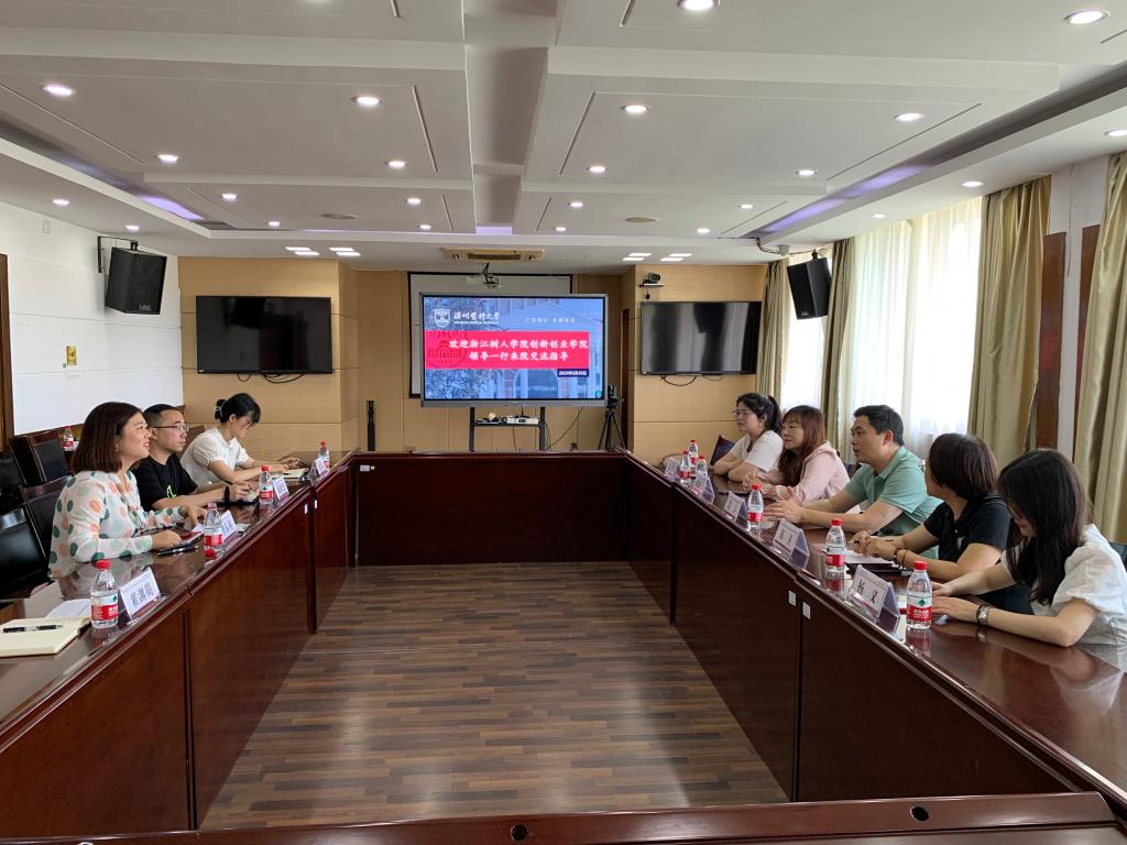 5月30日上午,浙江树人学院创新创业学院院长郭丰和副院长谢凌云带领教师程英、杨义、汪晴一行五人来红桃视频 交流指导。在同心楼四楼会议室举行交流会议,会议由红桃视频 副院长曾春燕主持。