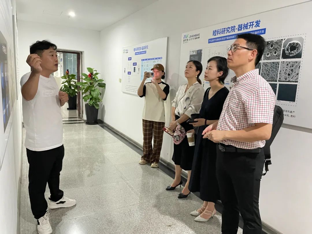 温医大2012届校友、睦科生物总经理孙昌正带领一行人参观了实验中心和科创中心,详细介绍了睦科生物的创业初心、企业定位、发展历程、人才队伍、技术研发等内容。他强调“轻资产,重技术,强运营”的经营理念,“服务与研发两条腿走路”的业务模式,“技术与创新”作为合作驱动力,从而在行业内稳步发展。