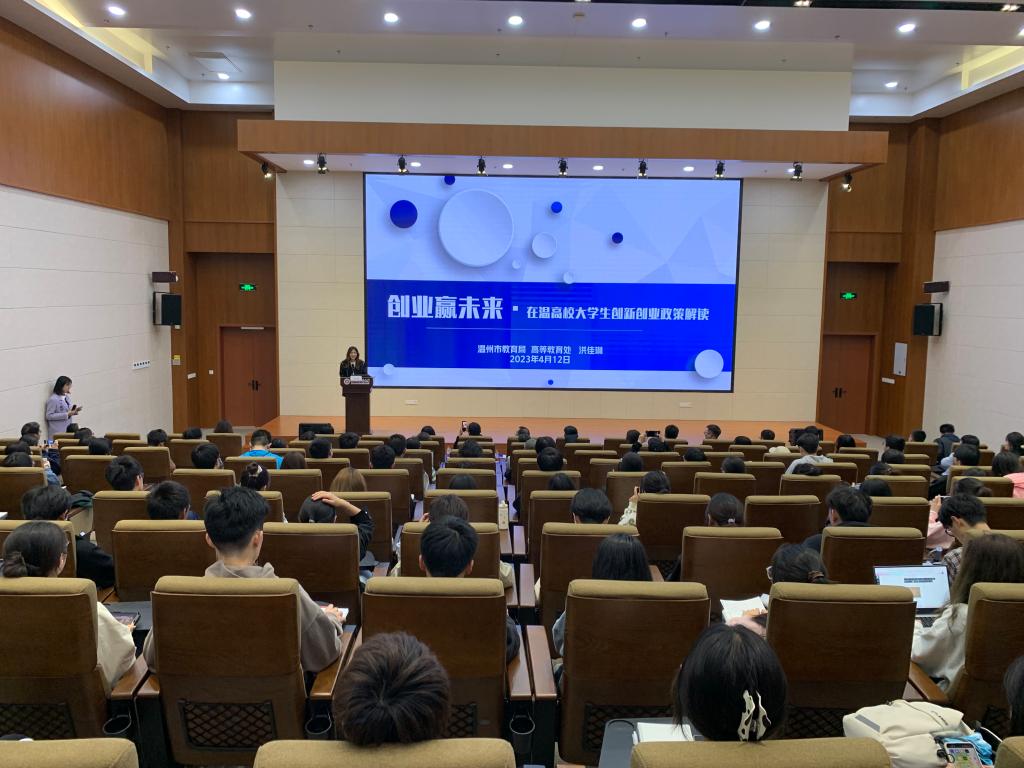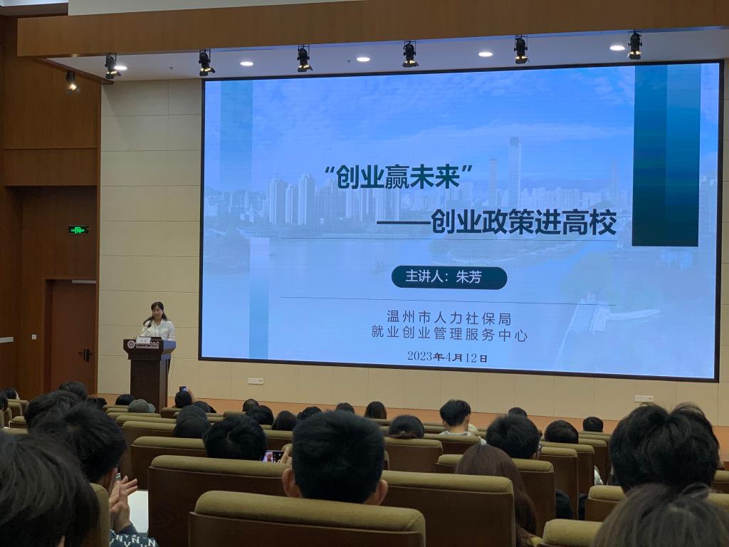 温州市人力资源和社会保障局就业创业管理服务中心朱芳副主任宣讲人社系统创新创业政策,包括中央、省委省政府对创新创业的支持,温州市对创新创业的支持,深入浅出的给大学生普及了创新创业的规章制度。