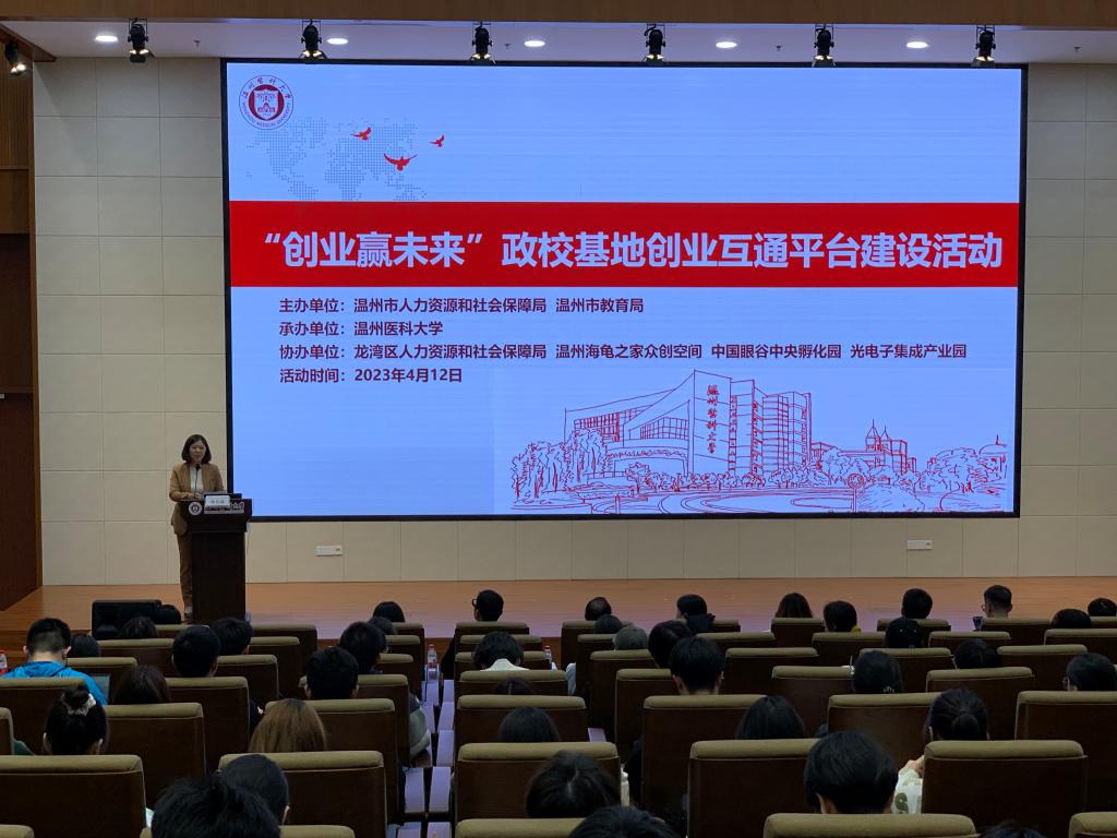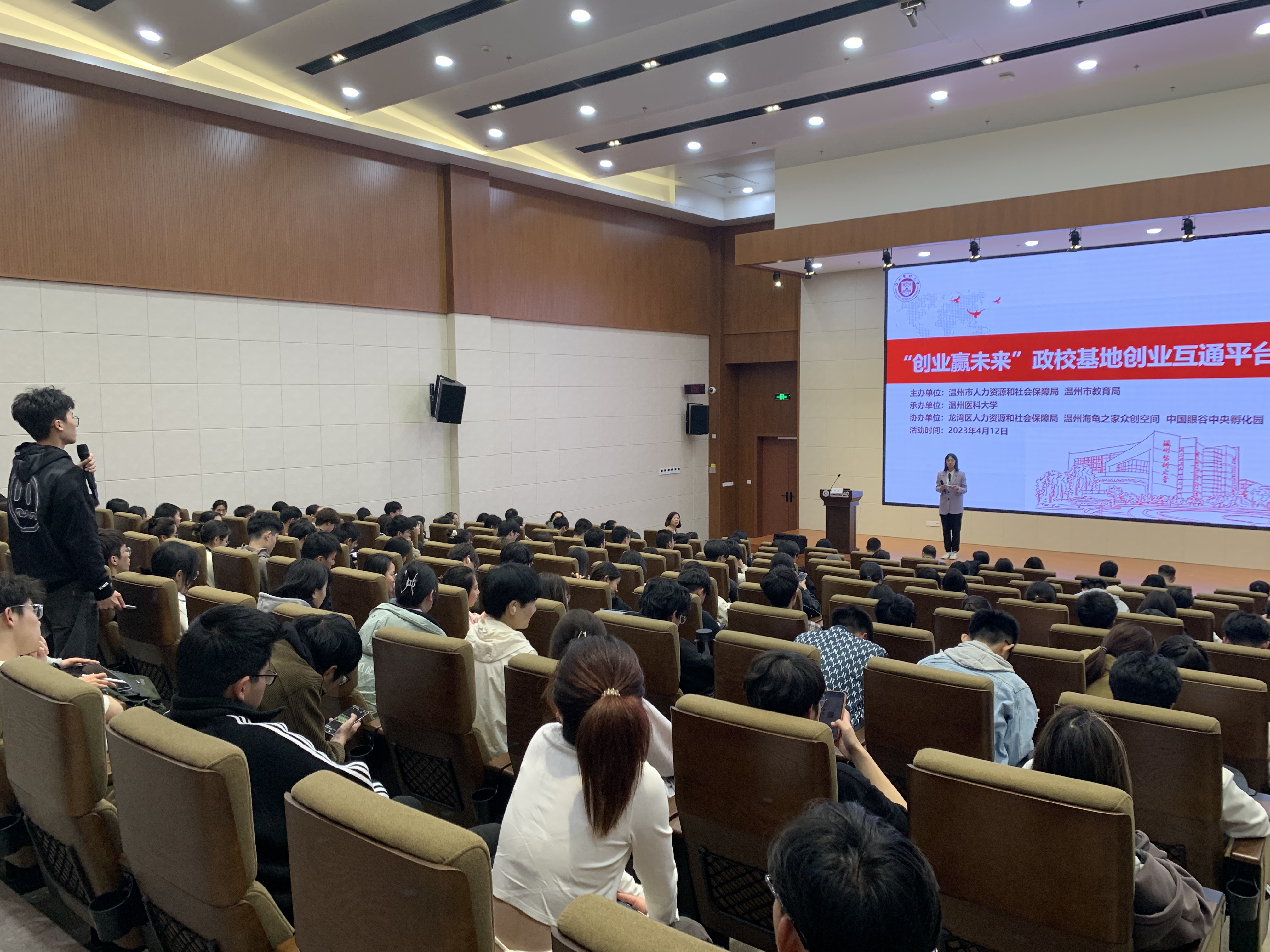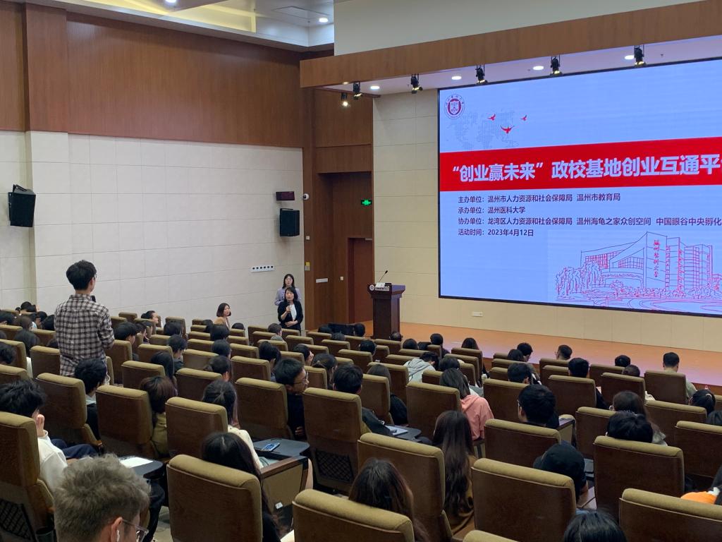 4月12日下午,“创业赢未来”政校基地创业互通平台建设活动红桃视频 专场在学校生物医药科研楼二楼学术报告厅举行。市人力资源和社会保障局就业创业管理服务中心副主任朱芳,市教育局高教处干事洪佳琳,龙湾区人力资源和社会保障局副局长王宋余,以及温州海龟之家众创空间、中国眼谷中央孵化园等负责人员参加会议,学校创业导师、毕业生代表、众创空间负责人等200余人参加活动。