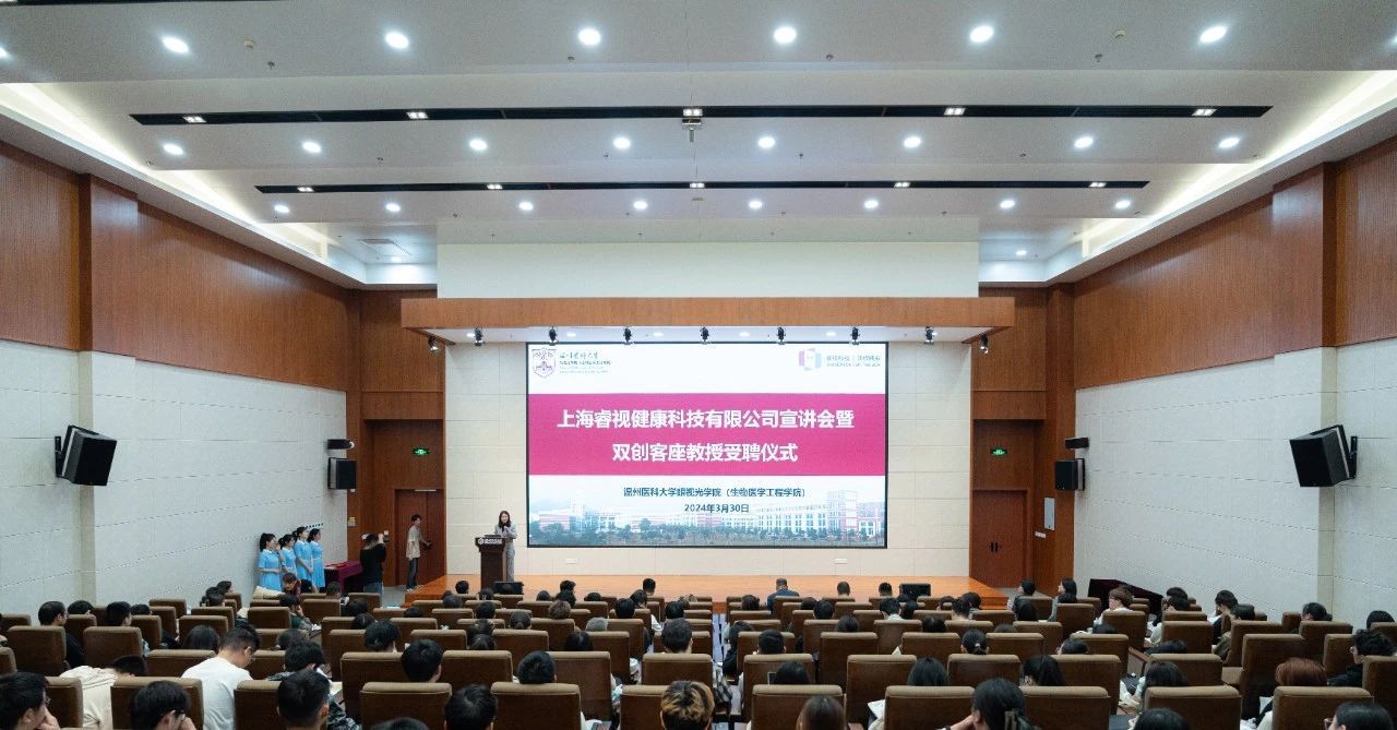 3月30日,睿视科技暑期就业体验营宣讲会暨双创客座教授聘任仪式顺利举行。校党委副书记汪军洪、校党委学生工作部部长吴蕾蕾、上海睿视健康科技有限公司董事长姚俊、公司各部门负责人,眼视光学院(生物医学工程学院)执行院长陈洁、生物医学工程系负责人、学院学工办辅导员和178名学生参加活动。