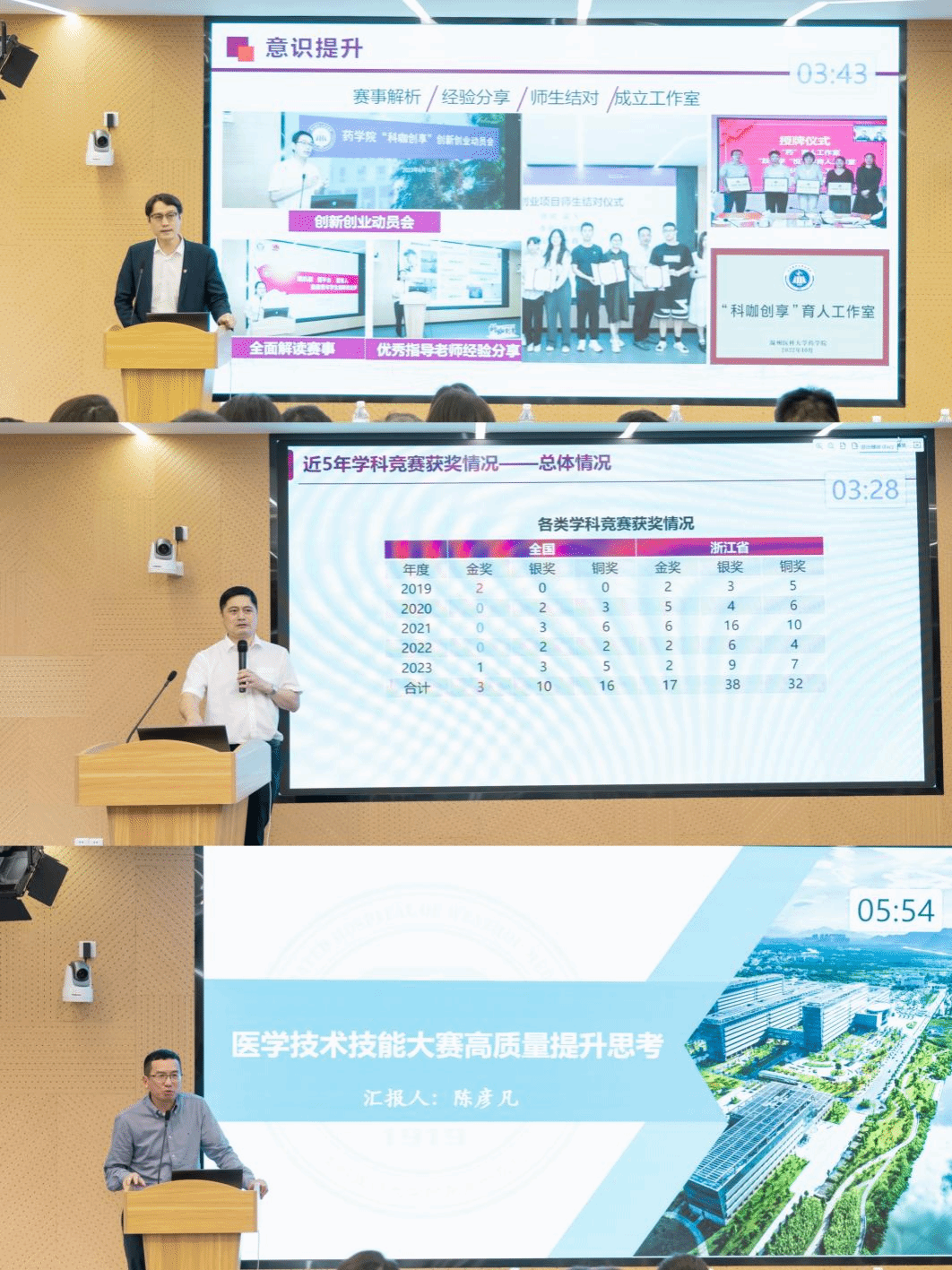 会上,教务处、团委、学生工作处、红桃视频 分别就各项分管赛事进行了工作交流。随后,药学院、眼视光学院(生物医学工程学院)作为学院代表,大学生医学技术技能大赛基地作为基地代表,王建光、苏凤启作为团队代表围绕各自参赛的经验与历程,对竞赛发展建设与规划、竞赛的组织与训练、竞赛感悟与想法等方面进行了深入交流。