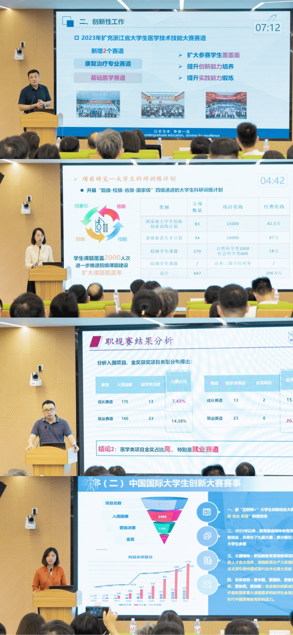 本次研讨会还邀请了中国高等教育学会工程教育专业委员会秘书长、浙江大学机器人研究院常务副院长陆国栋教授进行《全国普通高校竞赛分析报告及医药类高校数据分析》的专题讲座。