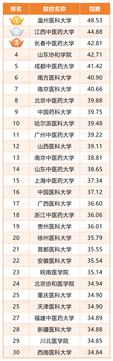 作为全国领先的第三方高校创新创业教育评价研究咨询服务机构,创指数平台通过双创实践、双创教学、双创研究、双创成效和双创声誉五大核心模块,全方位、多维度地评估了各高校在创新创业方面的建设成效,以全面客观的数据分析系统展现了中国医学类本科院校在创新创业领域的综合实力。