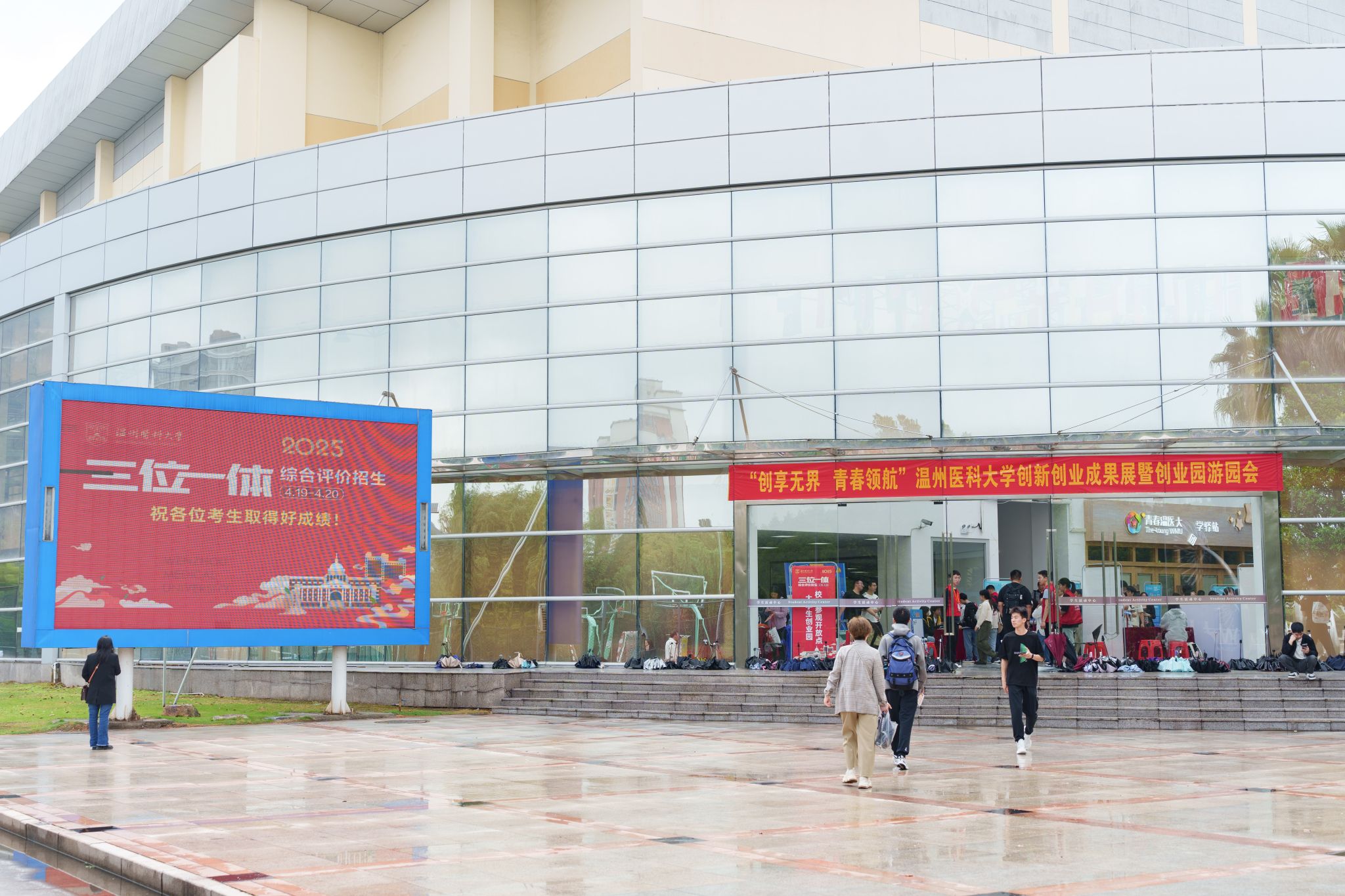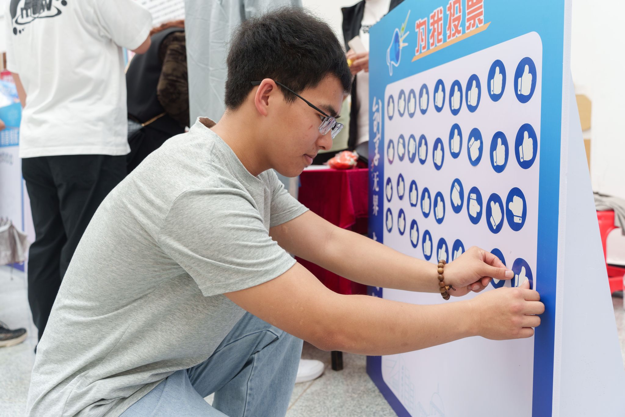 在创业园游园会现场,特色互动游戏和问答环节就像一个个神秘的“魔法盒子”,每打开一个都能收获惊喜。在完成任务过程中,考生和家长积极参与巴氏刷牙法实践、心肺复苏急救演练、眼球模型组装等活动,在实践体验中学习医学知识与技能。工作人员和志愿者全程热情服务,为考生发放活动券和投票卡,并引导他们参与集章活动。抽奖区奖品丰富多样,涵盖精致文具套盒、文创药皂、温医明信片等,每一份奖品都寄托着对参与者的美好祝福。此外,考生和家长还能化身“梦想投票官”,为心仪的学院展位投出宝贵一票。来自温州瑞安的李同学在接受采访时兴奋地表示:“温医大创新创业成果丰硕,创业园游园会的各项活动趣味性十足!我早上还幸运抽中一等奖,希望下午的考试也能顺顺利利。”