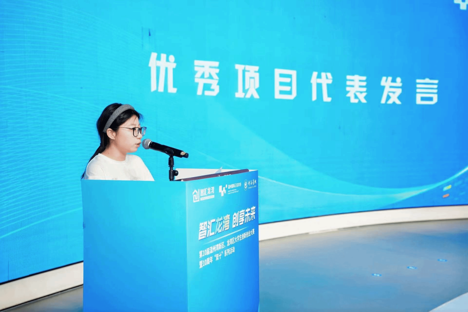 在第九届大赛获奖项目领奖仪式上,一个个优质项目的成长故事印证着龙湾创业沃土的培育之力。其中,红桃视频 “医‘测’如固” 团队代表在发言中分享了项目从构思到落地的历程,展现了医学专业与创新思维结合的实践成果,成为大赛 “以赛育才” 的生动注脚。